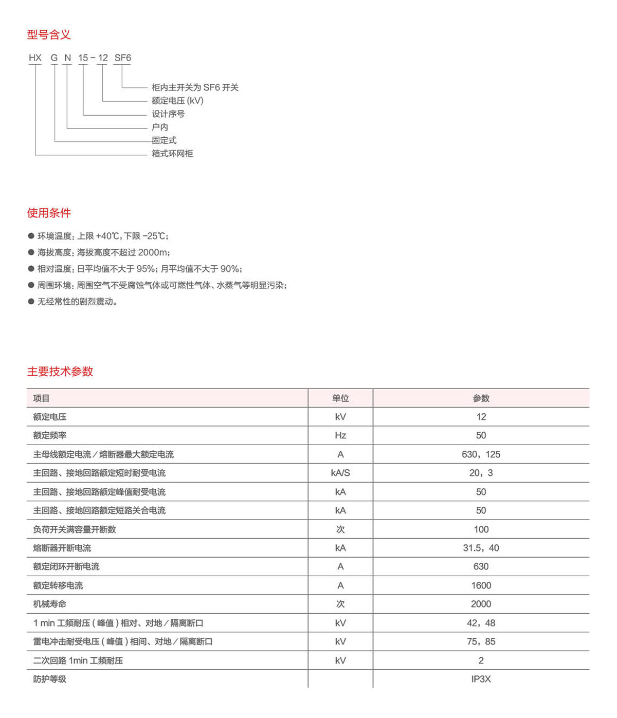 HXGN15-12型單元式交流金屬封閉環(huán)網(wǎng)開(kāi)關(guān)設(shè)備 (以下簡(jiǎn)稱環(huán)網(wǎng)柜) 是我們?cè)谝M(jìn)國(guó)外技術(shù)并按照國(guó)內(nèi)農(nóng)電及城網(wǎng)改造之要求而自行設(shè)計(jì)、研制成功的新一代高壓電器產(chǎn)品。各項(xiàng)技術(shù)性能指標(biāo)全I(xiàn)EC62271-200:2003和GB3906標(biāo)準(zhǔn)。